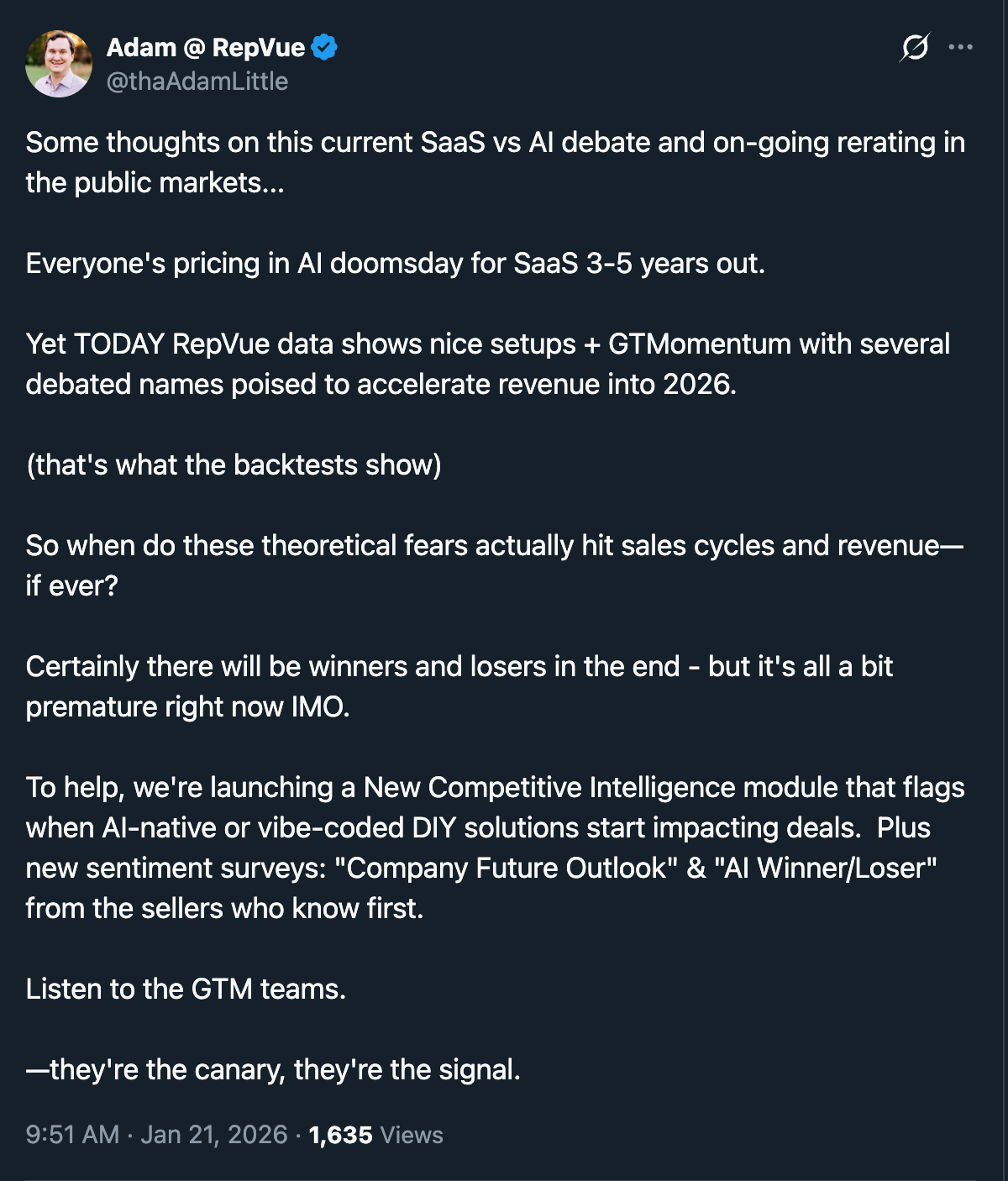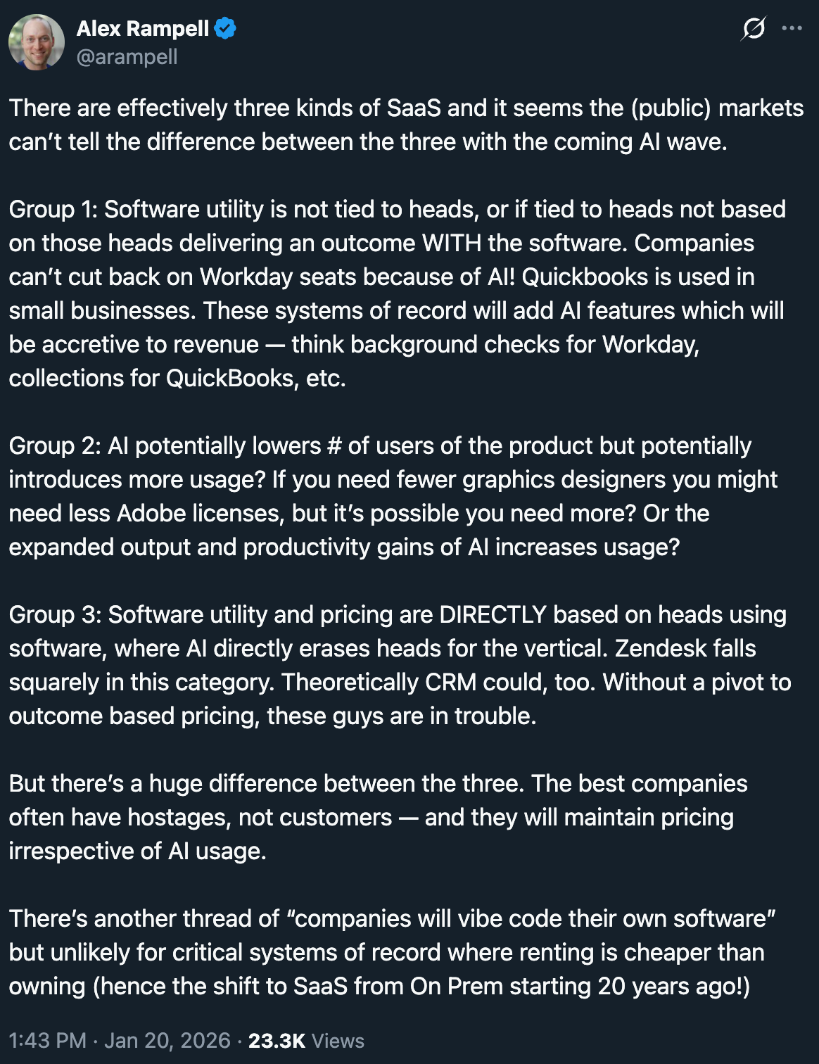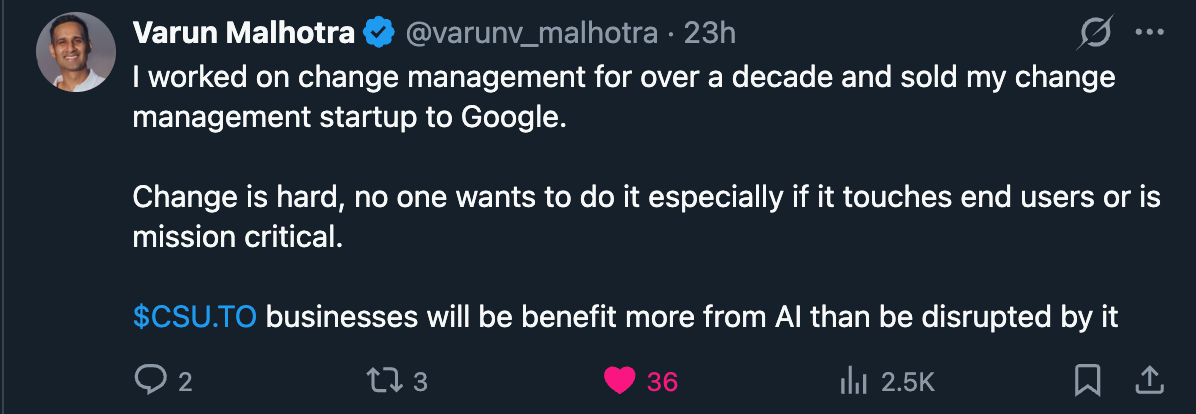 In the case of $CSU and SaaS in general, we have a few random comments about the general state of software right now — especially with AI and AGI encroaching.