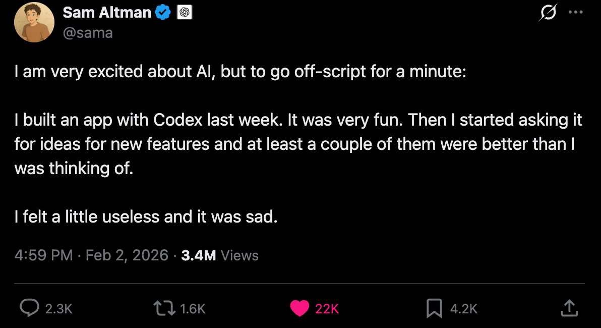 But coding doesn’t have that friction. Pure software and AI diffusion in it moves at a pace the physical world simply cannot. Which means developers didn’t get the slow on-ramp that drivers got. They got the full thing all at once.